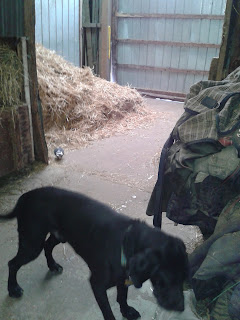Another busy day at the barn for Bruiser. I'm just a smidgen concerned that Bruiser is not eating as much as it should. It pecks away at stuff on the floor in the barn and occasionally eats its pigeon food. Maybe it just likes a variety. Bruiser rode around on old Coconut, my Chesapeake Bay Retriever. It tries to ride on Zoey Pearl, my ghost dog, but she is just too slippery with her short grey coat.